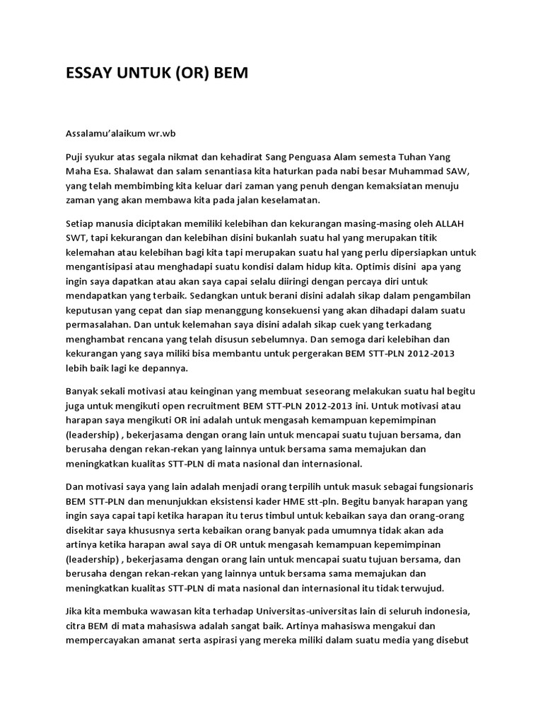 And while some of whats being said may be true for a good amount of colleges Wolfs deploring of academic essays and StLukes claim contoh essay tentang motivasi belajar that its easy to get good grades it is in no way universal because each class is taught by an actual person who will teach the class in their own way. Saya memiliki banyak impian yang ingin saya capai. Esai tersebut merupakan hal yang dapat dikatakan wajib hadir dalam list persyaratan mendapatkan beasiswa atau sebuah program yang memerlukan proses.