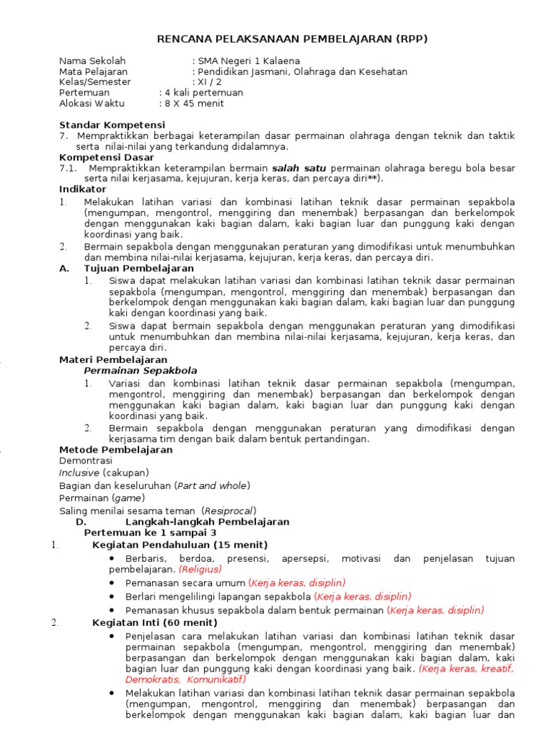 Rpp kurikulum 2013 penjasorkes sma. Download RPP PJOK SMA K13 ini untuk melengkapi administrasi anda sebagai guru SMA dan SMK. Renang gaya dada Alokasi Waktu. MIAIIS Materi Pokok.